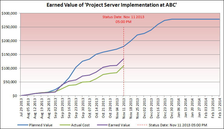 CurvesPro can also create an S-curve chart for the effort in your project (called 'Work' in MS Project) which allows you to track your project on 'Earned Work' versus 'Planned Work' and 'Actual Work'. This is beneficial if your project is about labor rather than money.